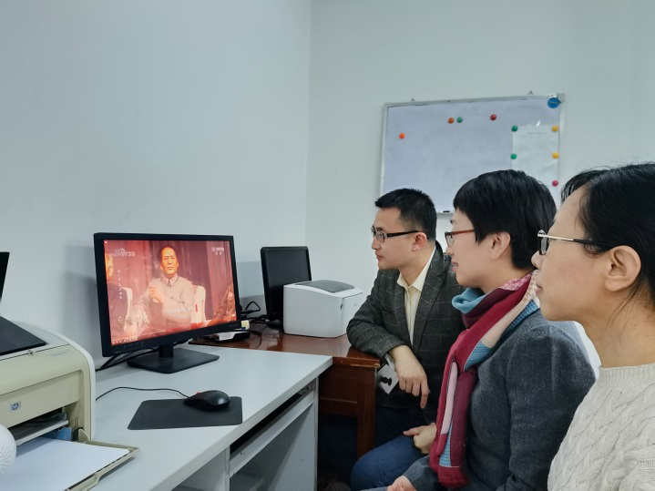 按照上级要求,马克思主义中国化党支部组织全体党员进行了观看。考虑到疫情影响等实际情况,支部采取了个别观看为主、个别观看与集中观看相结合以及交流研讨等形式。多数同志利用业余时间进行了个别观看;其中,张鹏、王晶梅、苏云婷三位老师于12月24日下午在教研室集中观看了该纪录片的第1-2集并结合工作实际进行了研讨。